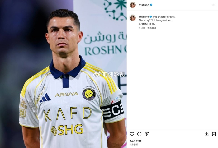 赛后,C罗发文道:“这一章已经结束了。故事?依然在被书写。感谢所有人。”截至目前,C罗还没有与利雅得胜利续约,而此前盛传,他有可能临时加盟某支球队,参加即将举行的世俱杯。