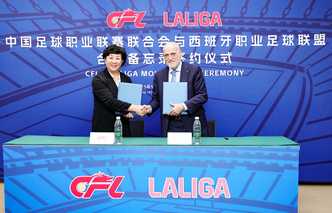 2025年5月28日,北京——中国足球职业联赛联合会(以下简称中足联)与西班牙职业足球联盟(以下简称西甲联盟)于今日达成重要的战略合作关系。双方共同签署了为期四年的合作备忘录,提出未来将在职业联赛体系建设、青训体系优化等领域展开全方位的合作,共同助力双方职业足球交流和发展。