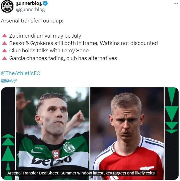总之就是情况依然是开放的,但综合来说,从跟队记者字里行间以及权威消息源来看,阿森纳似乎还是更倾向于运作谢什科。