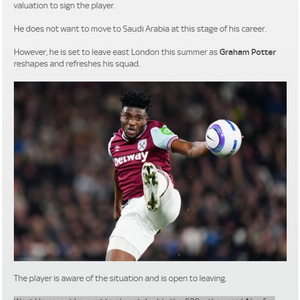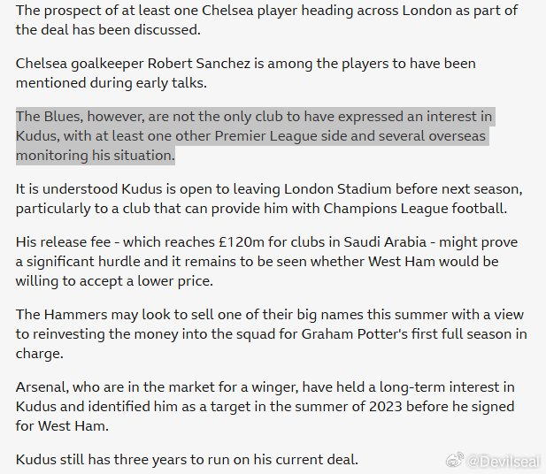 综合英国天空体育和BBC两家头部媒体(西汉姆跟队没咋发),库杜斯的情况基本上是被理清楚了: