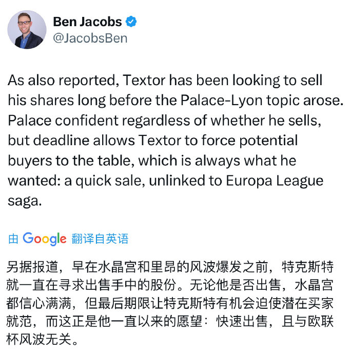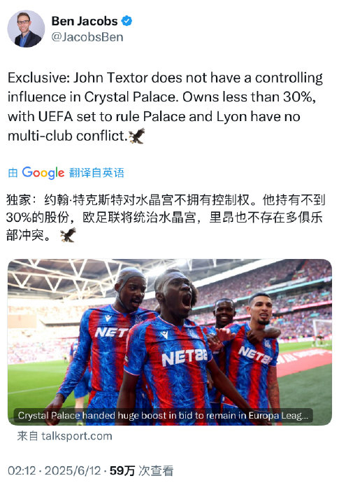 水晶宫摆脱股权风波,森林将如常参加欧洲协会联赛🌳