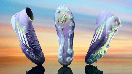 F50 SPARKFUSION采用醒目的淡紫色为基调,并以大胆的霓虹绿和渐变图案覆盖整体轮廓;外侧的阿迪达斯三条纹也同样采用了霓虹绿配色,尽显前卫风范。