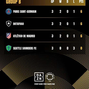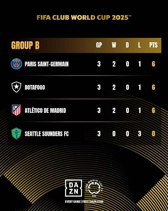【积分榜】 #2025世俱杯# 小组赛B组第3轮积分榜。