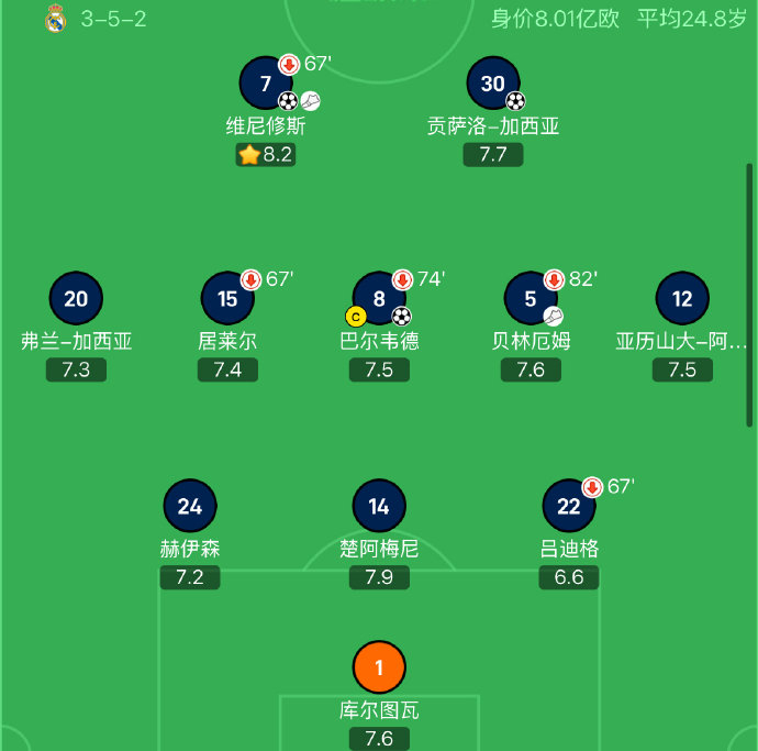 #萨尔茨堡红牛0比3皇马# 这是阿隆索执教三场以来,威尼修斯表现最好的比赛:1球1助攻,此前两场比赛颗粒无收。