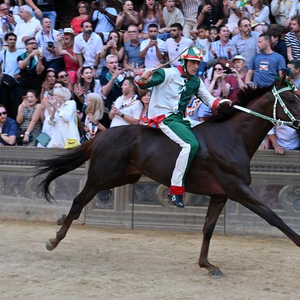 当日,锡耶纳赛马节在意大利托斯卡纳大区古城锡耶纳市中心的田野广场举行,吸引了众多观众前来观看。锡耶纳赛马节是世界闻名的意大利传统民间活动,始于1656年,每年7月和8月举行两次。