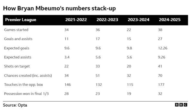 姆贝莫的转会还没有确定,但如果他加盟,最适合的位置显然是右翼的10号位。那是这位出生于法国的悍将在布伦特福德用6年时间证明自己最擅长的区域,他喜欢与一名中锋搭档,进行传跑配合,无论沃特金斯、伊万·托尼还是维萨,姆贝莫都能「百搭」。
