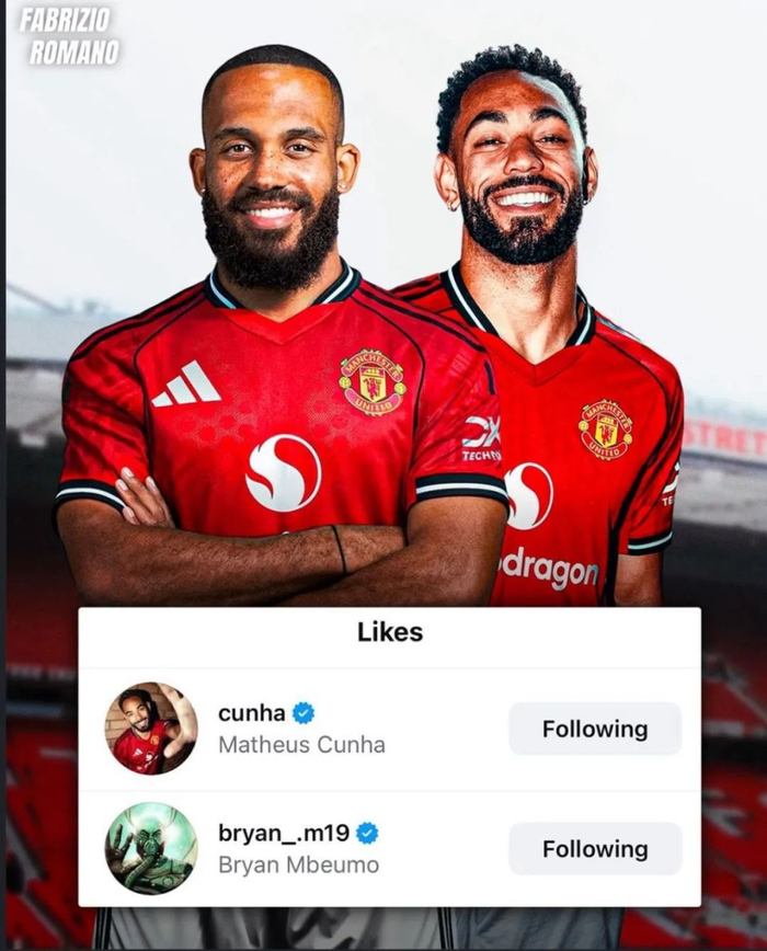 姆贝莫的长相酷似NBA巨星勒布朗·詹姆斯,他与曼联的夏窗首签库尼亚的组合,被戏称为「詹库连线」,暗比另一名篮坛明星史蒂芬·库里。这对红魔新的双翼,转会费总值超过1.3亿英镑!有趣的是,他们都点赞了法布里济奥·罗马诺宣布这笔交易「Here we go」的社媒报道。