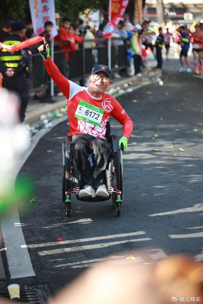 致敬!他完成第95场马拉松,坐着轮椅