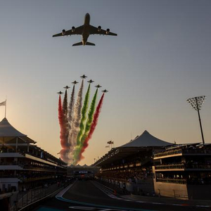 这是2025年12月7日拍摄的2025赛季世界一级方程式赛车锦标赛(F1)阿布扎比大奖赛正赛前举行的飞行表演。