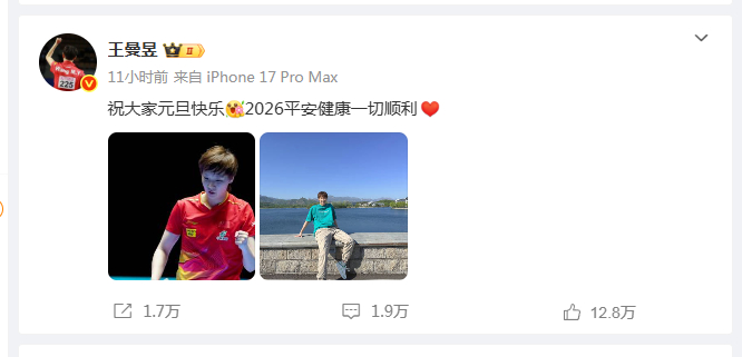 新年元旦,王曼昱送祝福,球迷:2026年健康涨球+冠军