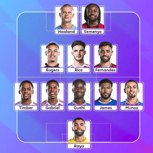 英超官方在今天公布了由球迷们从多达123人的候选名单中票选出的2025自然年英超年度最佳阵容。