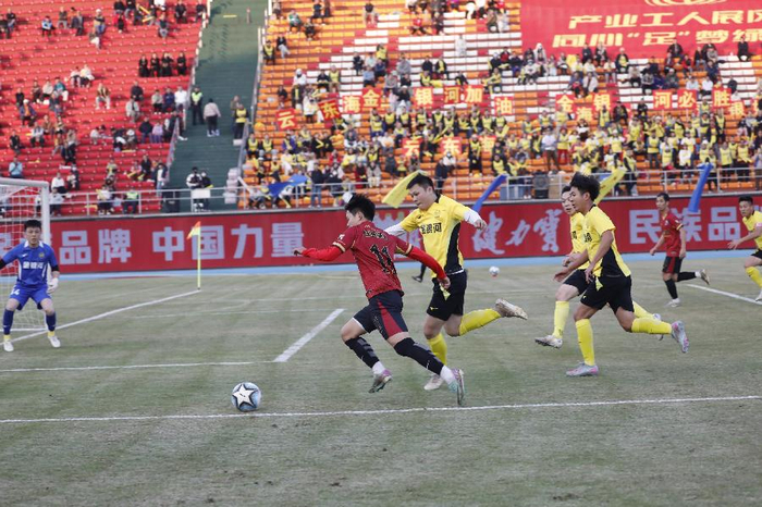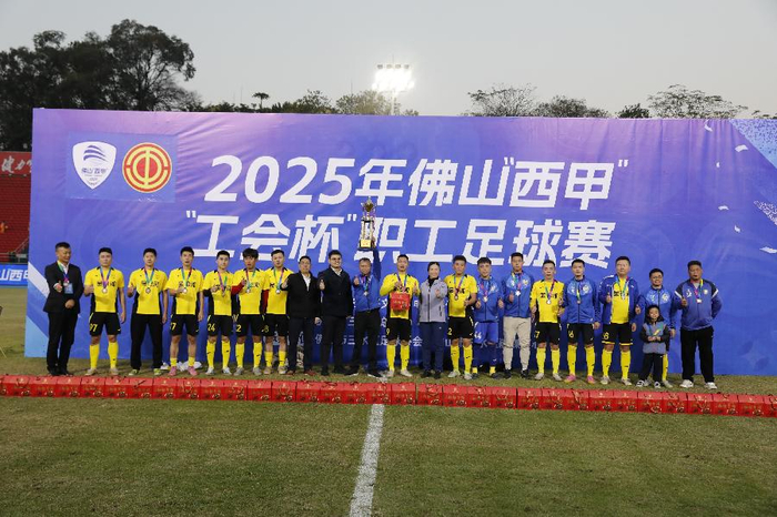 新快报讯 2026年1月3日,2025年佛山“西甲”“工会杯”职工足球赛迎来收官之战。在激烈角逐中,西南珏骏建材队以4:1战胜云东海金银河航舰队,成功夺得本届赛事冠军,云东海金银河航舰队则凭借出色发挥获得本届赛事亚军。在稍早进行的三、四名决赛中,芦苞顺兴源队与西南健力宝队在常规时间内战成0:0平,最终芦苞顺兴源队通过点球大战以3:2取胜,获得季军,西南健力宝队获得殿军。