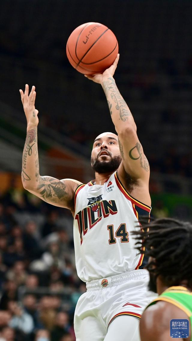 ↑ 吉林长白山恩都里队球员摩尔在比赛中投篮。