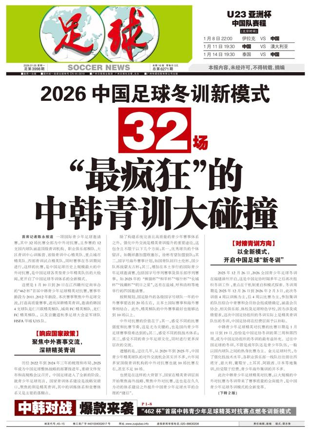 2026中国足球冬训新模式:32场!“最疯狂”的中韩青训大碰撞