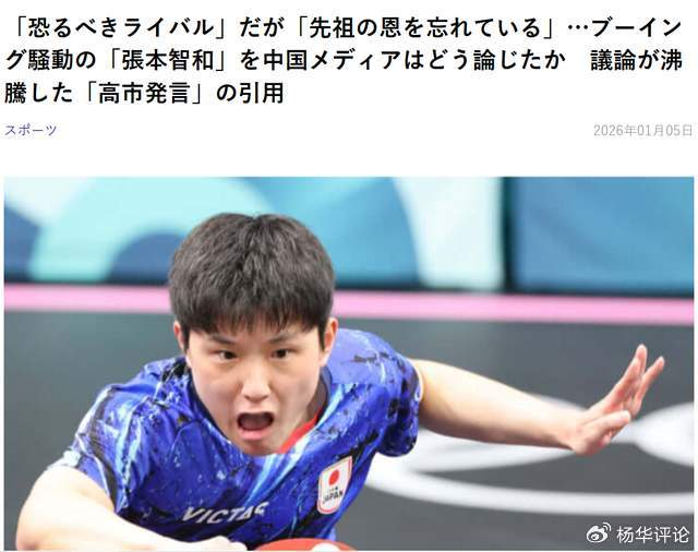 有少量理性日本球迷指出:“在中国国内搬出高市的名字并不合适。作为一名运动员,获得荣誉就已足够,夹带政治信息怎么看都不像是无心之举。这是一份经过算计的宣誓书。张本智和心里非常清楚。我认为他明知在中国这么做会引发什么后果,却还是做了。”