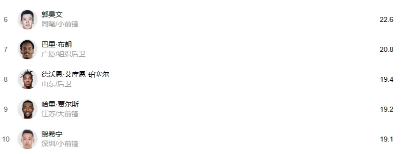 CBA前十轮最佳阵容评选!没有一名现役国手!辽篮神锋反超胡金秋