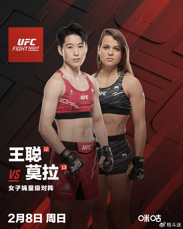 尽管对手莫拉经验丰富,且在其12场胜利中有9场以终结方式获胜,终结率极高,但王聪深厚的站立格斗背景,赋予了她更出色的距离控制与立体打击能力,这将成为她赢得比赛的关键优势。若能顺利击败莫拉,王聪将极有可能获得对阵排名更高选手的机会。