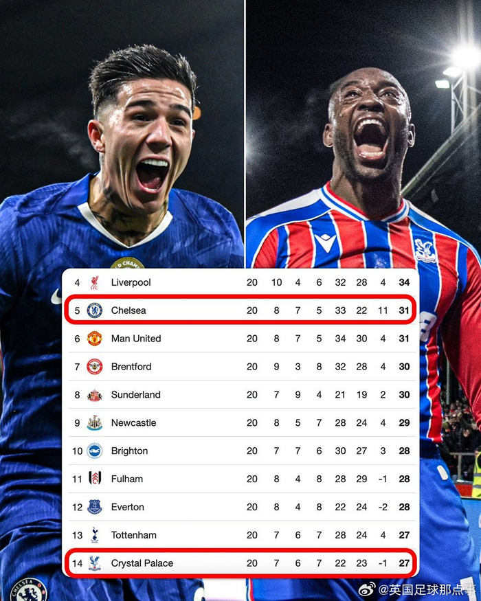 英超第五至第十四名仅差4分,竞争激烈