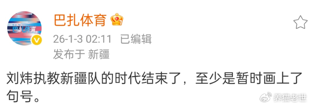 主帅击败广州龙狮让刘炜得到了喘息的机会,然而客场惨败给山东男篮,让刘炜失去了最后的稻草,根据新疆媒体透露,新疆男篮已经进行了调整,刘炜会暂时离开球队,姜正秀成为代理主帅,但目前新疆男篮没有进行回应。