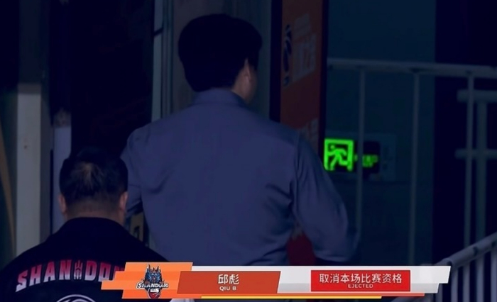 对此,山东主帅邱彪怒不可遏,他脱掉西服暴怒摔在地板上,并且不断去对临场裁判员进行指责,不满裁判的吹罚。邱彪被连续吹罚两T驱逐取消比赛资格,但邱彪依然是情绪激动,还在场内继续指责与抱怨。