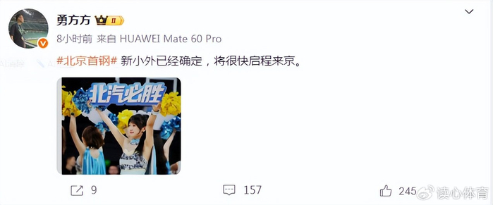 据跟队记者勇方方透露,北京首钢新外援已经敲定,将很快启程来华,北京首钢自从把奥莫特裁掉后,便一直只用3名外援作战,结合各方面消息源显示,北京首钢新签的小外援很有可能是曾在欧洲知名俱乐部皇马、拜仁效力过的后卫泽维尔-梅耶斯。梅耶斯31岁,身高1米93,身体强壮,擅长突破内线制造杀伤,也能串联球队,北京首钢目前的小外援杰曼打高端局屡屡被对手限制,球队若想利用周琦、赵睿巅峰期争冠,签下高水平小外援必不可少。