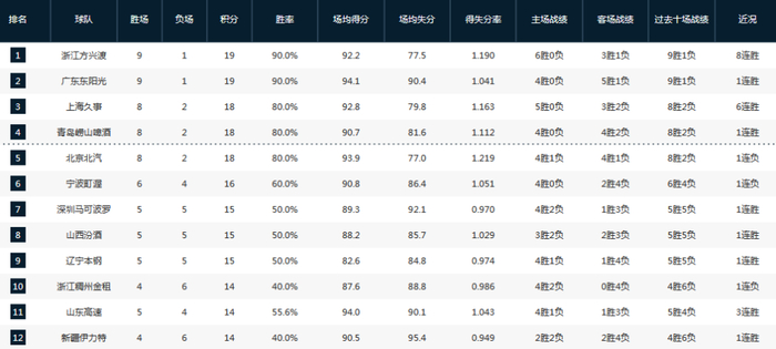 CBA最新排名:辽宁山西结束连败 广州强势崛起 山东惊险赢球