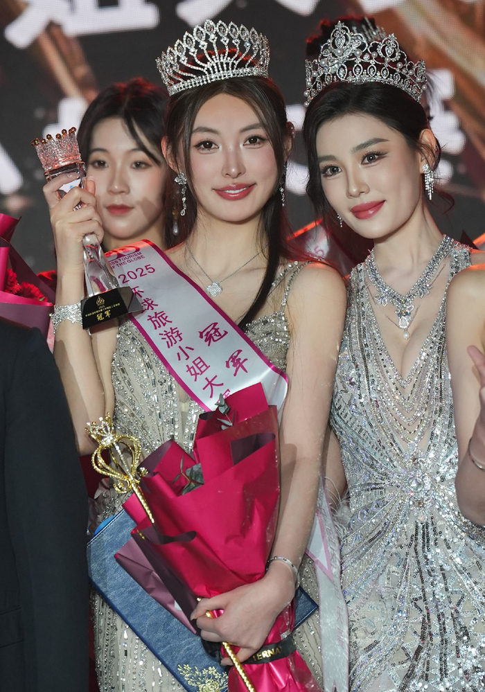 2025环球旅游小姐新晋冠军王语会(左一)和2025环球国际小姐中国总决赛冠军朱琳(右一)合影