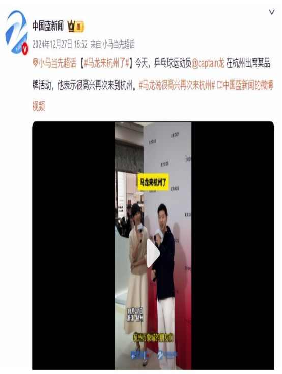 去年12月,马龙就现身杭州。