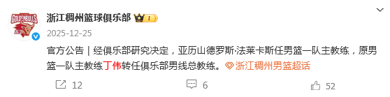 新赛季至今,由于成绩未能达到预期,不少球队开启了更换主帅的操作,除了天津外,分别还有浙江主帅丁伟,新疆主帅刘炜,深圳主帅迈克尔·凯利。