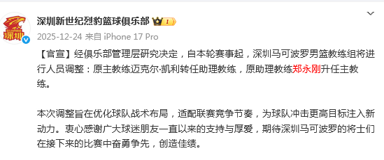 深圳主帅迈克尔·凯利同样开局阶段战绩不佳,随后老牌主帅郑永刚回归帅位,一波近6战4胜,战绩重新回归到50%,换帅效果立竿见影。