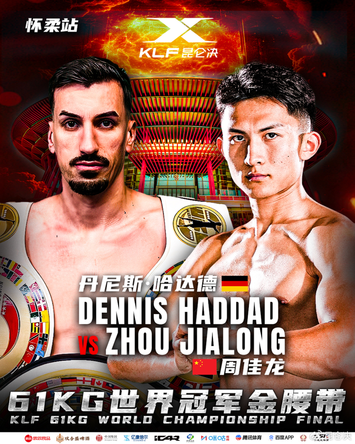 本次昆仑决新春盛典,德国五届世界冠军获得者“幸运双枪客”丹尼斯·哈达德将首次踏上中国的土地,在2026年昆仑决61公斤级世界冠军金腰带八人争霸赛的第一轮比赛,迎战中国踢拳名将“神龙摆尾”周佳龙。