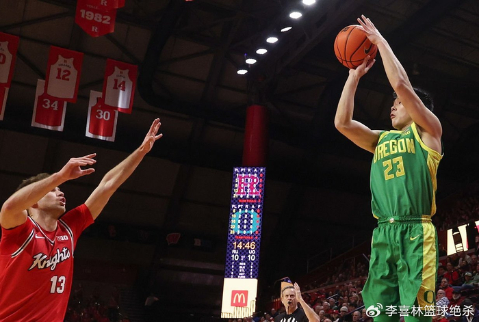 上半场还剩14分44秒,林葳在左侧底角接到辛普金斯的传球稳稳命中三分球,帮助俄勒冈大学13比10领先。