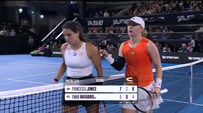 琼斯在奥克兰首轮遇到前世界第八纳瓦罗,赛前曾有人幽默地表示,如果她能战胜实力派纳瓦罗爆出奥克兰首轮最大冷门,将会为她当前的励志故事增添浓墨重彩的一笔,“敢不敢倒逼自己一把?”
