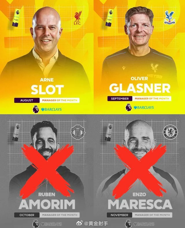 本赛季英超已颁发四座月度最佳主教练的奖杯,其中11月得主马雷斯卡于元旦当天下课,而10月最佳得主阿莫林于1月5日下课。