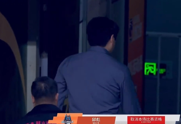 本场比赛,山东主帅邱彪不满裁判的吹罚尺度,怒喷裁判的方式无法解决问题,情绪彻底失控,直接脱掉西装,对着裁判进行输出,后者直接给到驱逐离场的处罚,取消本场比赛的资格。