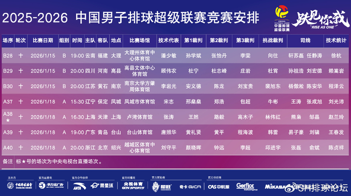 2025~2026中国男排超级联赛第十轮竞赛安排