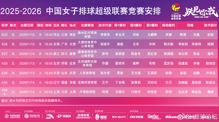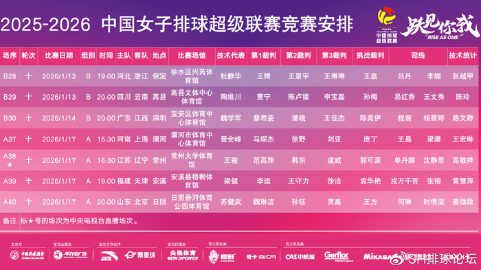 2025~2026中国女排超级联赛第九轮、第十轮竞赛安排 SH排球论坛 01.0620:38 关注 2025~2026中国女排超级联赛第九轮、第十轮竞赛安排2025~2026中国女排超级联赛第九轮、第十轮竞赛安排