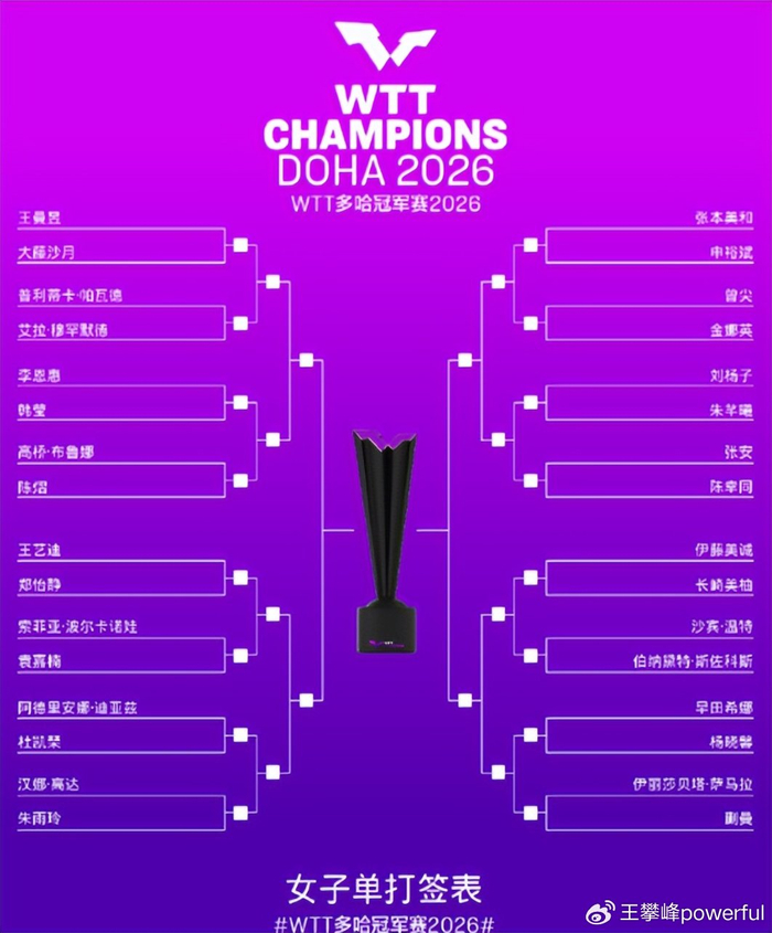 多哈冠军赛女单抽签表正式出炉,谁的签最硬呢?