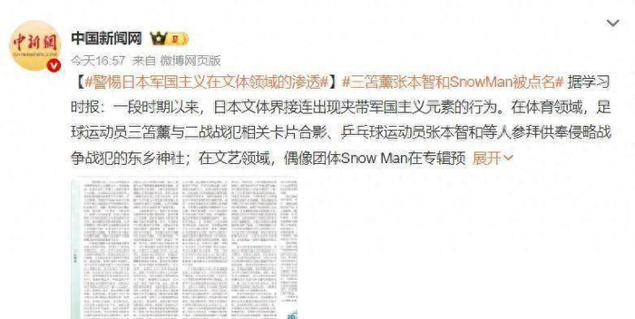 《学习时报》文章将张本智和事件与日本足球运动员三笘薰、偶像团体Snow Man等争议并列,指出这是日本极右翼势力有组织的行为模式。