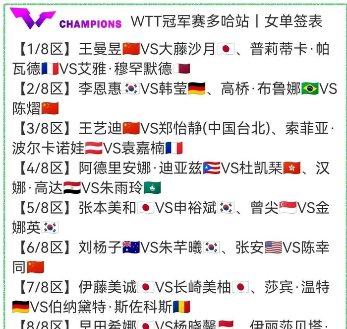 硬碰硬!2026WTT多哈冠军赛签表出炉,王曼昱首战与大藤沙月相遇