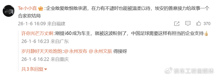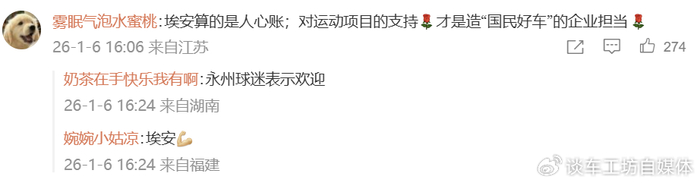 网友纷纷为这一主动接力的姿态点赞,并对“续写”的具体形式展开想象:有人认为可能会延续“送车”承诺,毕竟这是汽车企业的天然优势;也有人推测或将通过赞助等形式支持球队发展,这与埃安长期投入体育事业的形象相符;亦有人期待为球员提供更具意义的成长支持。尽管形式尚未明确,但公众普遍认为埃安的善意接力,或将给故事一个合家欢结局。