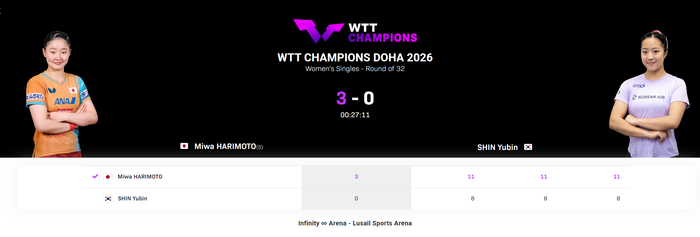 北京时间1月7日,WTT多哈冠军赛女单1/16决赛,张本美和3-0横扫申裕斌,三局比分:11-8、11-8、11-8。这场比赛17岁的日乒一姐吊打了21岁的韩乒一姐,这两人的硬实力看上去非常明显,申裕斌几乎没有给张本美和什么阻碍。