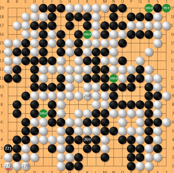 实战中,芝野虎丸执黑先行,福冈航太郎手握白棋。本盘对抗中,黑棋的芝野虎丸在布局中出师不利,从而在角落实地损失惨重,局面劣势!好在随着中腹的激战深入,黑棋逐渐压缩了白棋的实地从而逐渐将局势逆转!最终,完成收官之后,芝野虎丸半目险胜!