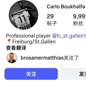 2026年1月9日,北京国安体育总监马永刚刚关注了来自瑞士超球队圣加伦的中场球员布哈勒法。从布哈纳法的社媒不难看到,北京国安新任体育总监马永明刚刚点了关注。按照中超以往的转会惯例,通常若一位新的外援要加盟某支中超球队,那么他本人就会提前关注这支球队,或者这支中超俱乐部的某位成员也会对他提前关注。