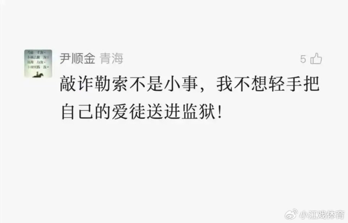 他还表示:“敲诈勒索不是小事,我不想亲手把自己的爱徒送进监狱!”