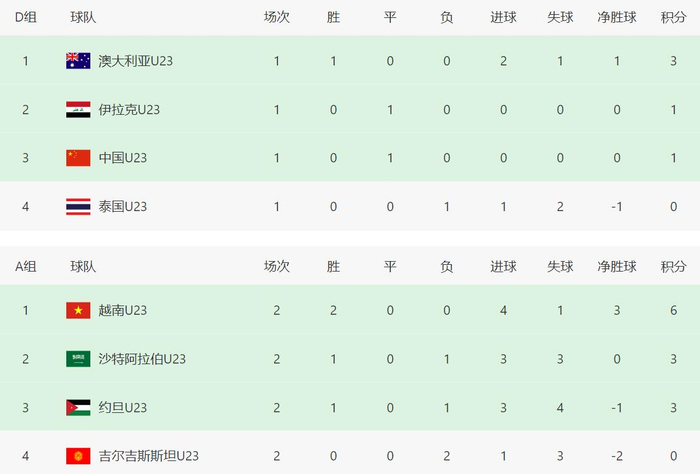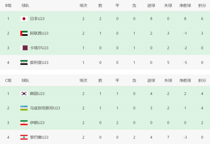 随着韩国4-2,乌兹0-0伊朗,U23亚洲杯最新排名:首支出局队诞生
