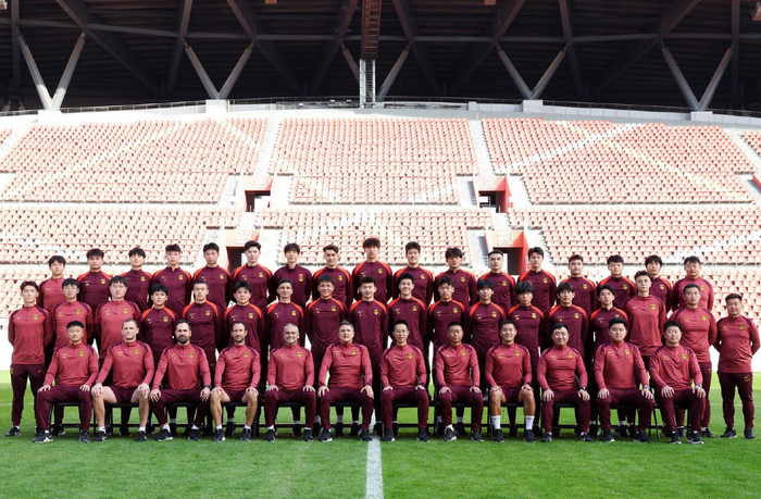 U23国足的教练团队中有两位前国脚,于大宝曾在大连阿尔滨和北京国安效力,黄博文效力过中超头号土豪广州恒大(晚池注:因为母公司骗钱多年,已经树倒猢狲散)。23名球员基本都来自中超和中甲球队。