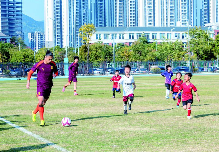国足球员与肇庆少年绿茵场竞技