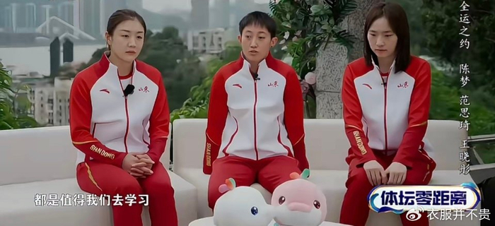 近日,乒乓球奥运冠军陈梦与山东乒乓球女队的队友们一起接受央视采访,队友范思琦对她大加夸奖。