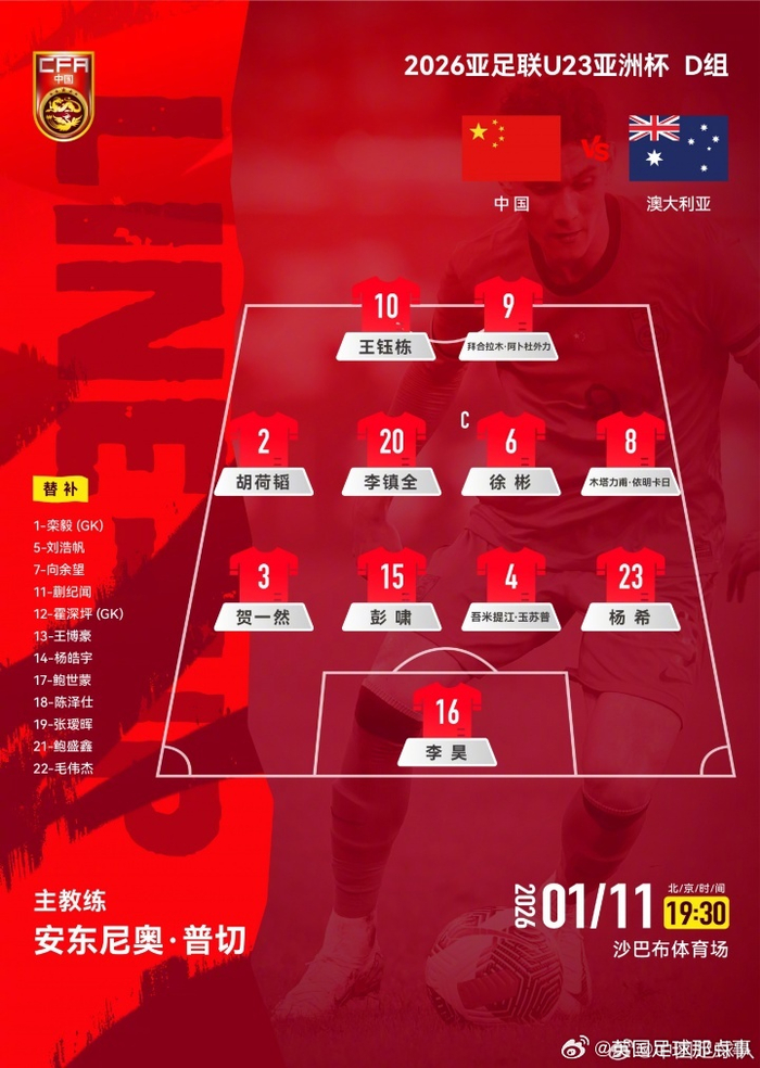 #u23国足vs澳大利亚u23# U23国足官方阵型442!